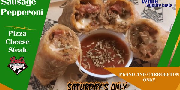 Philly steak, sausage, pepperoni, pizza sauce and cheese